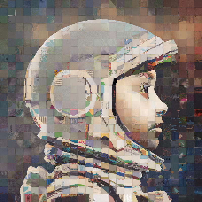For over a decade I have digitally scanned and stored these little tiles in a database that has grown to over 75.000 ‘pixels’. Each tile is inextricably linked to a unique piece of bookcover once incorporated in a real work of art.